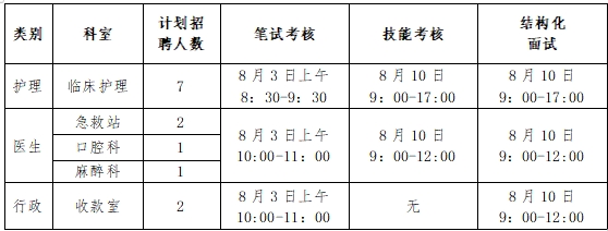 本次考試采用筆試、技能考核、結(jié)構(gòu)化面試等多種方式進(jìn)行,具體形式結(jié)合各崗位特點(diǎn)和報(bào)名人數(shù)確定,具體情況及時(shí)間安排如下:
